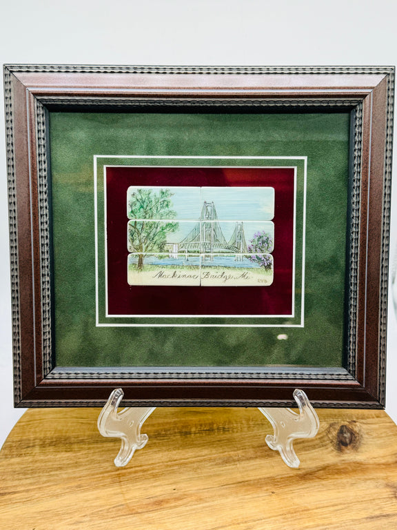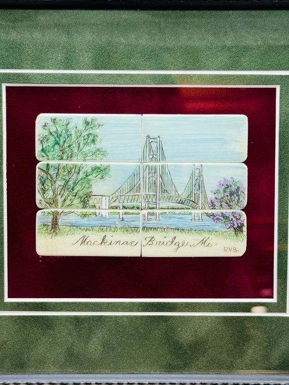 Repurposed Piano Key Artwork by Roger Van Boxtel. Roger collages piano keys, scrimshawed and painted on the keys, mats and frames them himself. Roger is from Green Bay WI. This work measures 8x9.5, signed RVB, artist bio is on the back of each piece and it is ready to hang or displayed anywhere