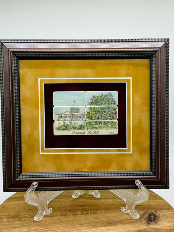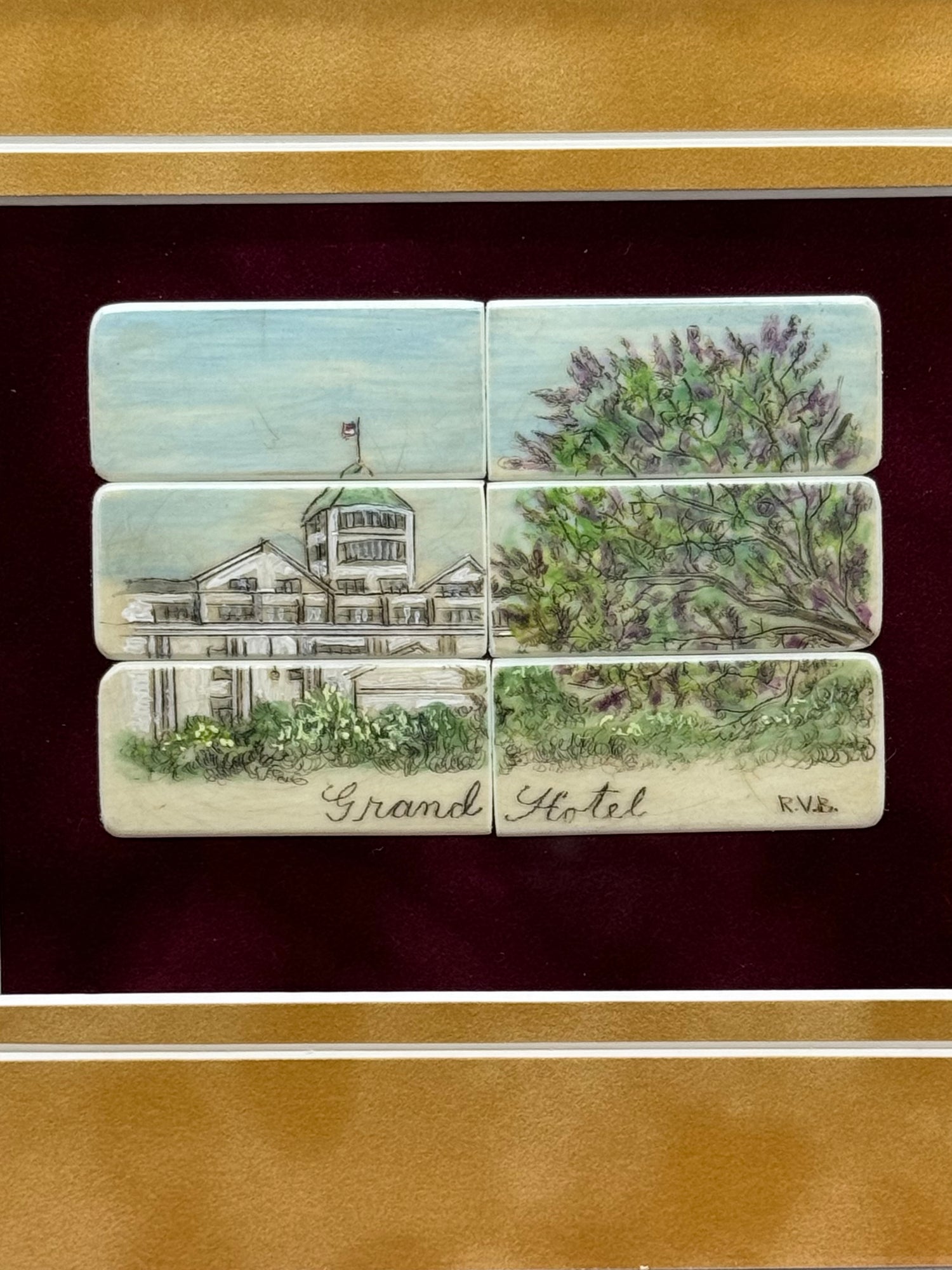 Repurposed Piano Key Artwork by Roger Van Boxtel. Roger collages piano keys, scrimshawed and painted on the keys, mats and frames them himself. Roger is from Green Bay WI. This work measures 8x9.5, signed RVB, artist bio is on the back of each piece and it is ready to hang or displayed anywhere