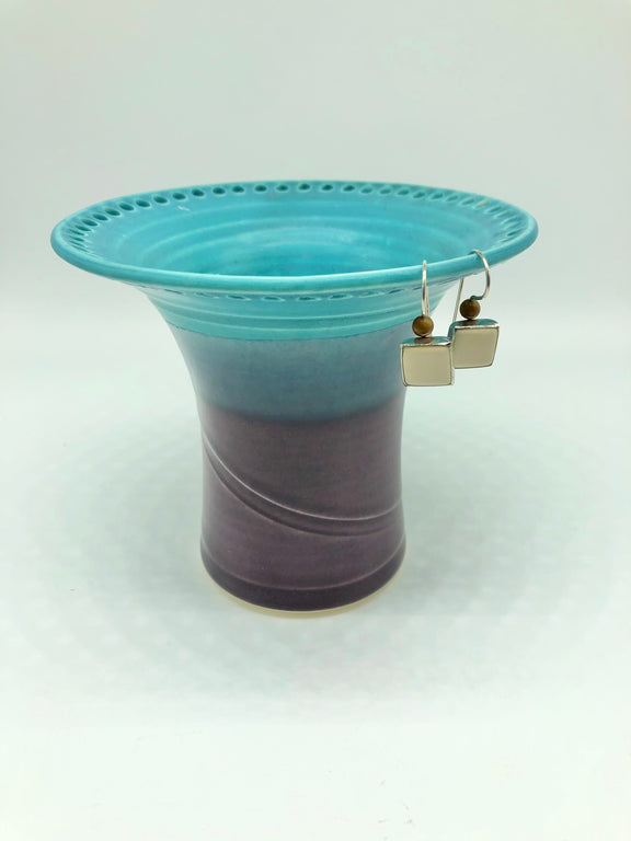 turquoise earring holder by Barb Lund of Ohio. Hand crafted and signed