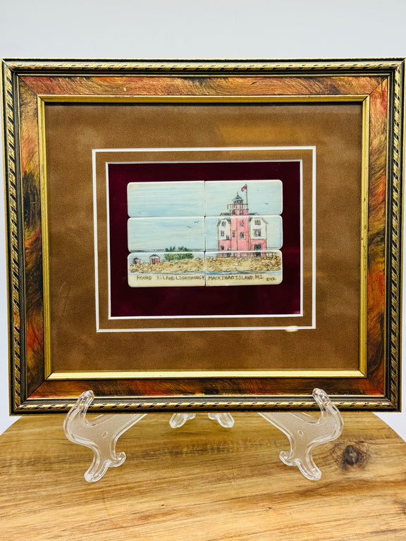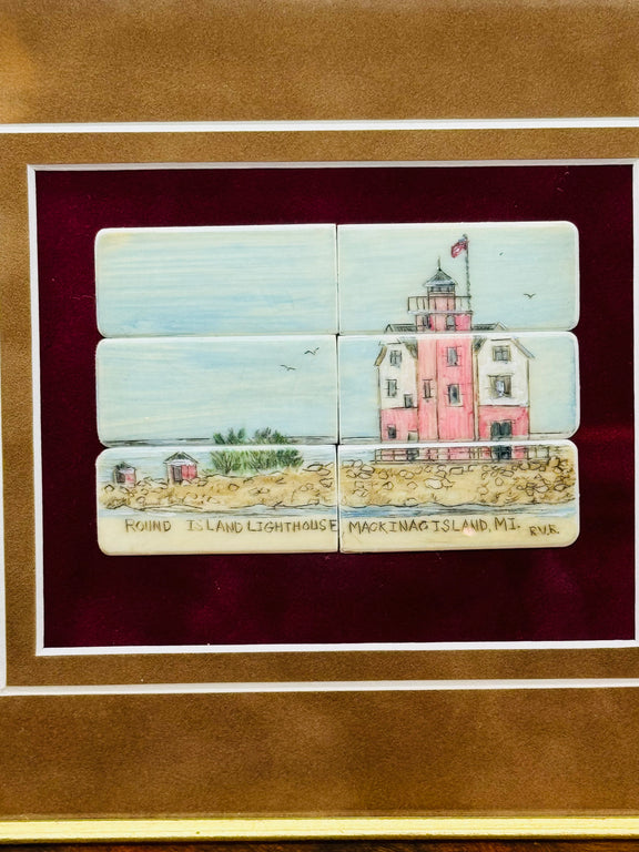 Repurposed Piano Key Artwork by Roger Van Boxtel. Roger collages piano keys, scrimshawed and painted on the keys, mats and frames them himself. Roger is from Green Bay WI. This work measures 8x9.5, signed RVB, artist bio is on the back of each piece and it is ready to hang or displayed anywhere